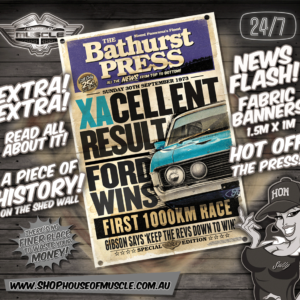 NEWS STAND BATHURST 1974 FORD FALCON XA GT FABRIC BANNER 1.5M x 1M