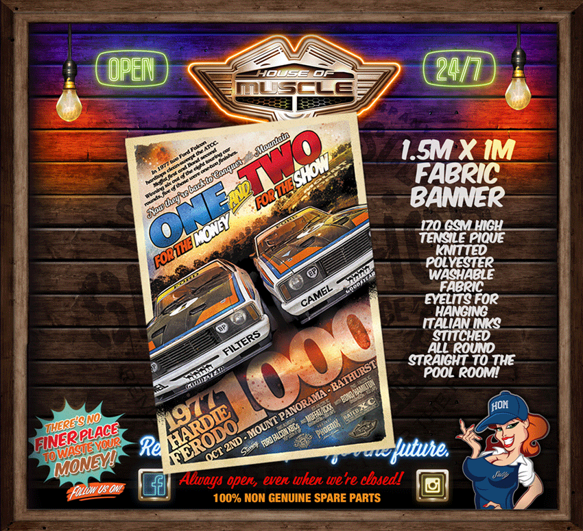BATHURST 1977 EVENT FORD FALCON FABRIC BANNER 1.5M x 1M