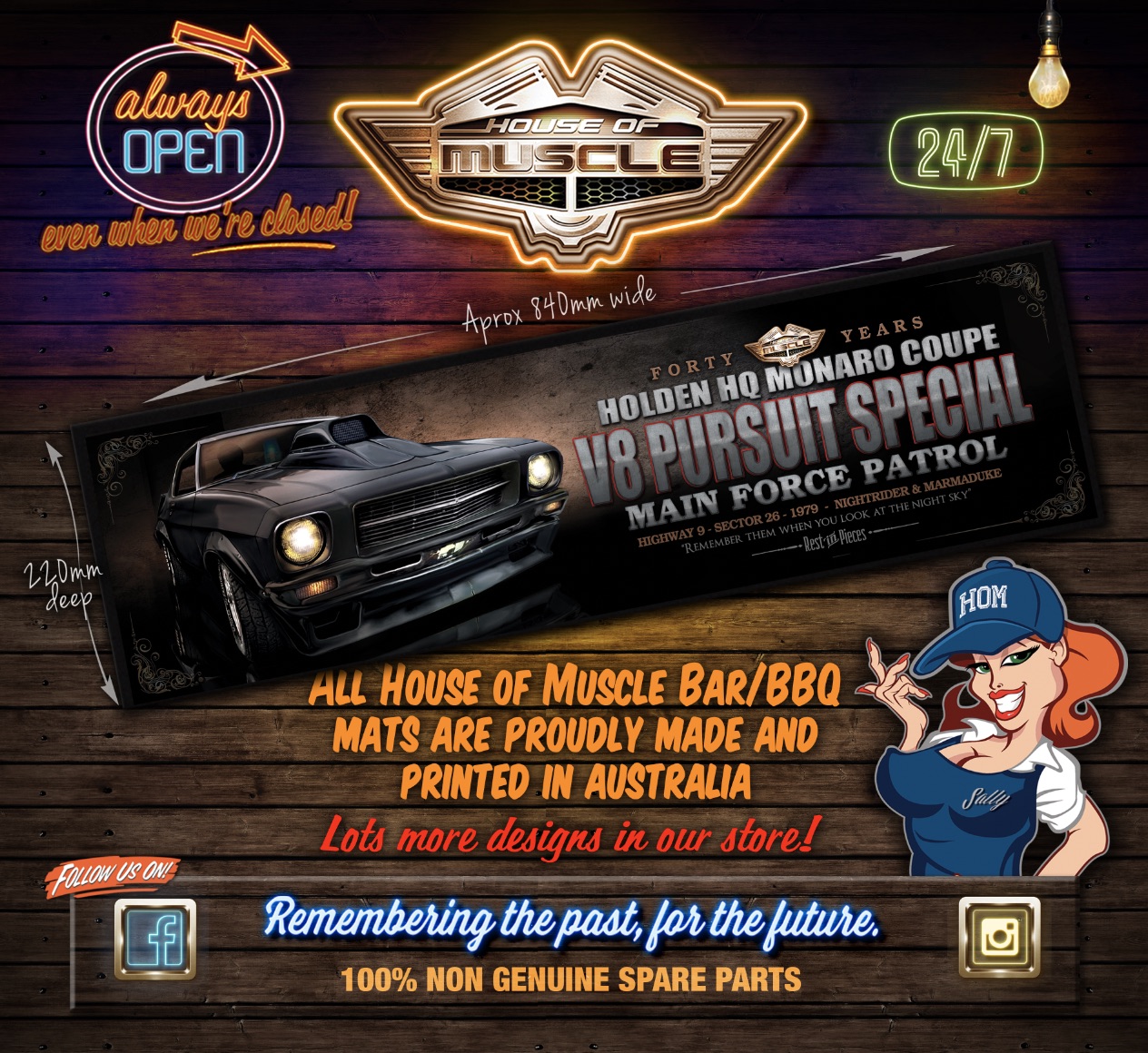 Mad Max HOLDEN HQ V8 Pursuit special Night Rider BAR BBQ RUNNER