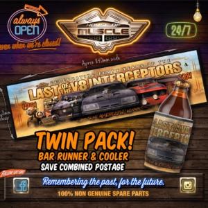 $4.99LAST OF THE V8 INTERCEPTORS VILLAINS 40 YEARS BAR RUNNER & STUBBY COOLER TWIN PACK