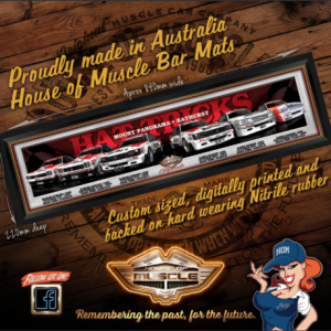 HOLDEN DEALER TEAMS HAT TRICKS TORANA A9X AND COMMODORES FAUX FRAMED PHOTO BAR RUNNER