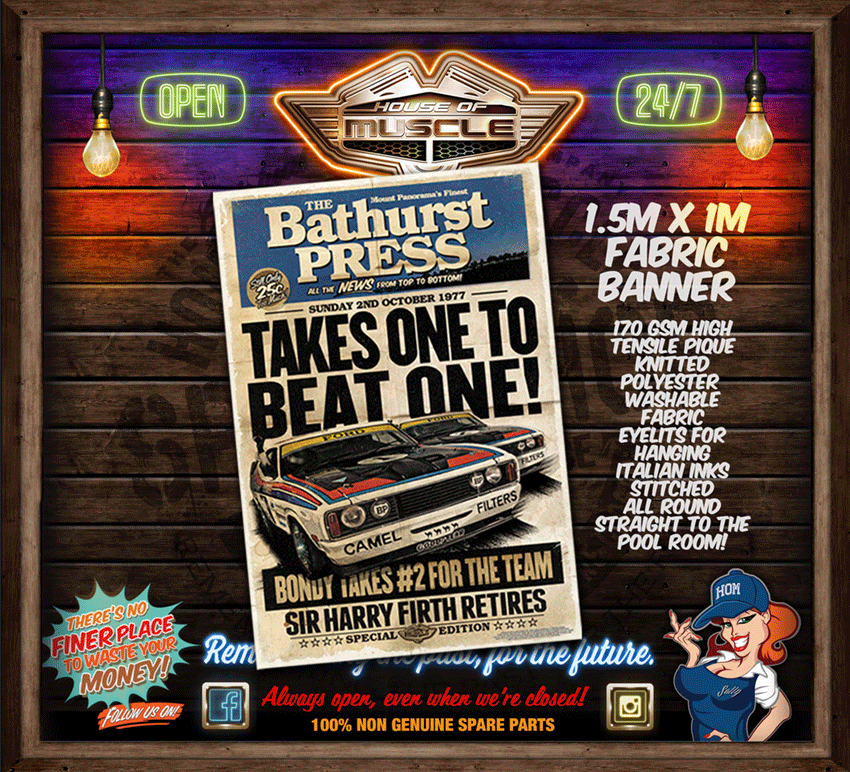FORD FALCON BATHURST 1977 NEWS STAND FABRIC BANNER 1.5M x 1M