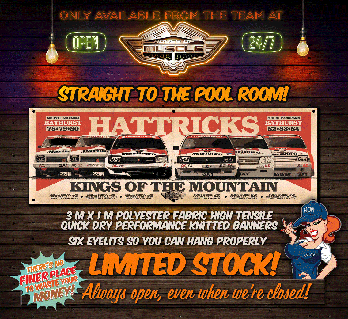 HOLDEN DEALER TEAM BATHURST HAT TRICKS RETRO 3M BANNER