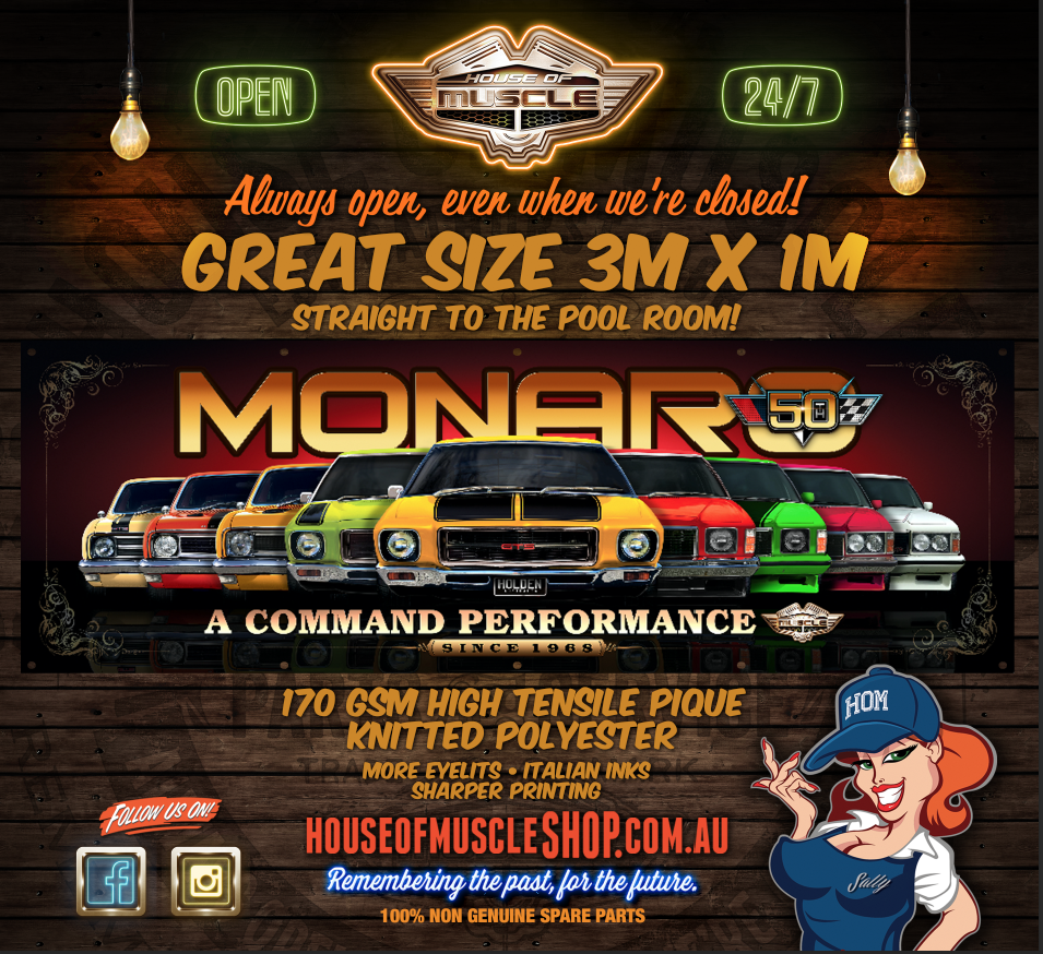 HOLDEN MONARO 50 YEARS FABRIC BANNER 50 YEARS OF MONARO FABRIC BANNER