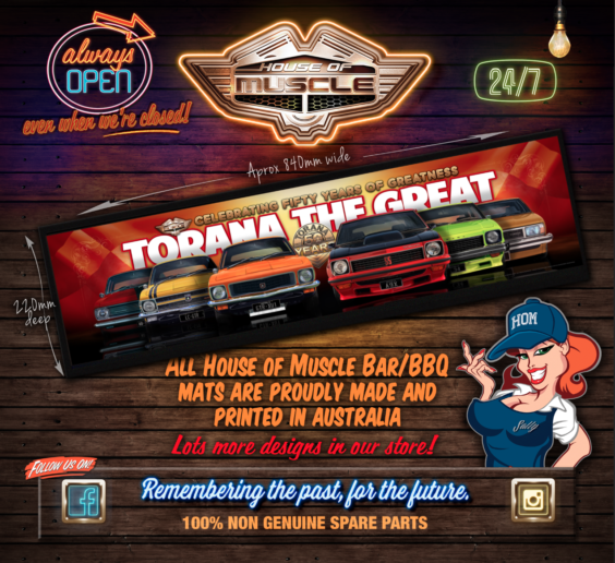 HOLDEN TORANA THE GREAT 50 YEARS BAR RUNNER HOUSE OF MUSCLE BAR MAT