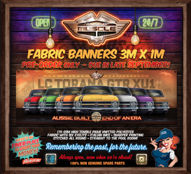 HOLDEN LC TORANA 50 YEARS GOLDEN ANNIVERSARY FABRIC BANNER