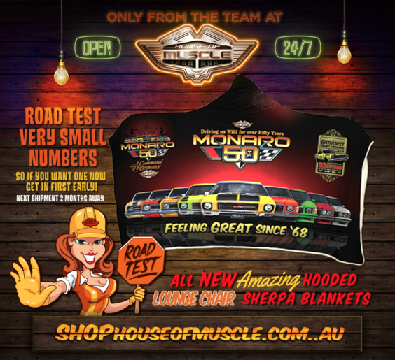 VERY LIMITED SUPPLY HOLDEN MONARO 50TH ANNIVERSARY SUBLIMATED SHERPA BLANKET IDEAL FOR SNUGGLING UP ON THE COUCH ON A COLD DAY