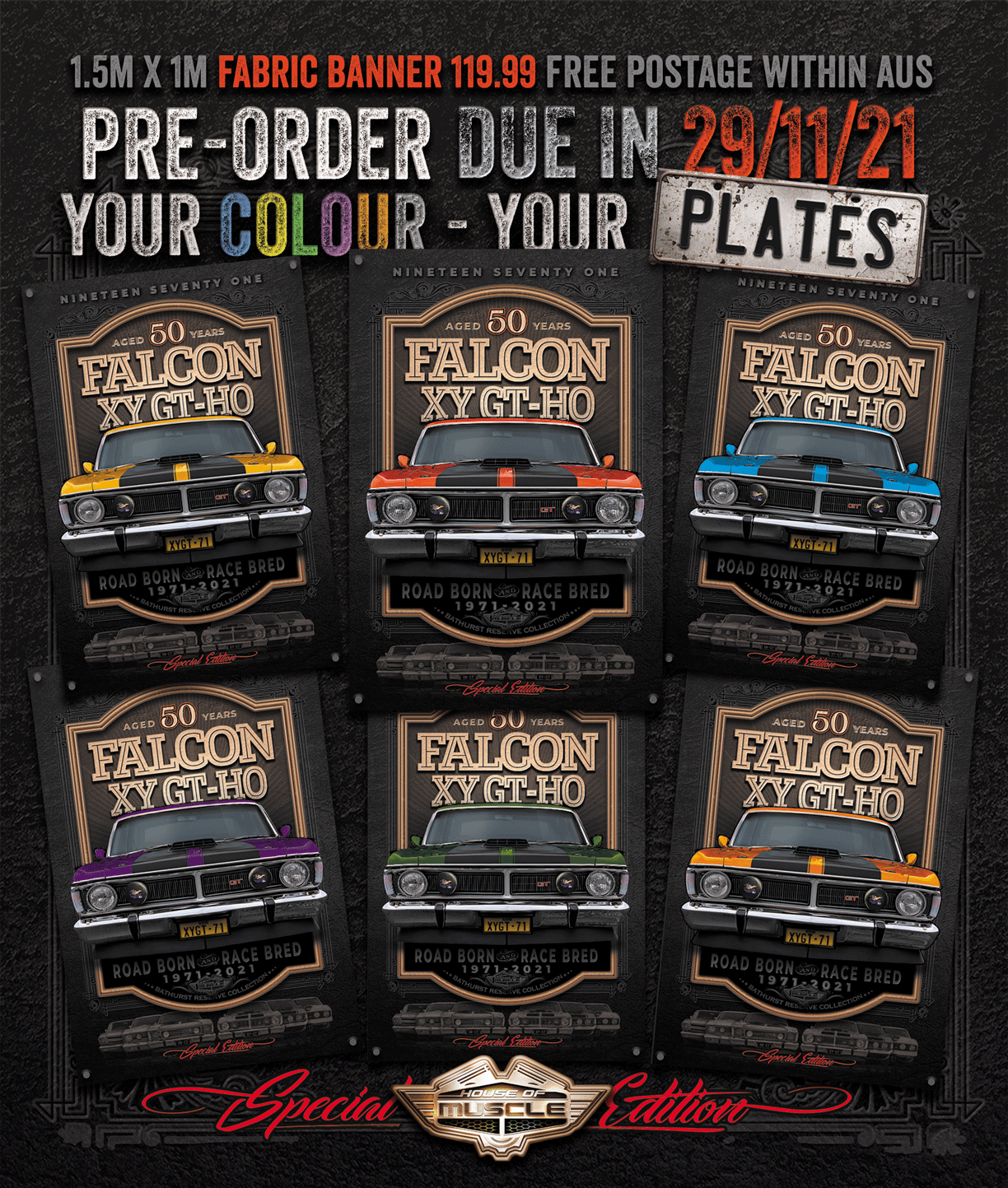 PRE-ORDER FINISHED – DUE IN 29/11/21 FALCON XY GT PERSONALISED PLATES 1.5M x 1M BANNER FREE POSTAGE WITHIN AUSTRALIA