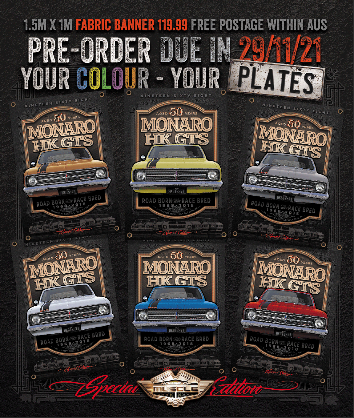 PRE-ORDER OVER DUE IN 29/11/21 MONARO HK GTS PERSONALISED PLATES 1.5M x 1M BANNER FREE POSTAGE WITHIN AUS