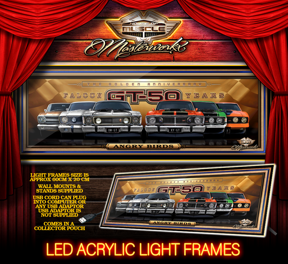 FORD FALCON GT ANGRY BIRDS LED LIGHT UP ACRYLIC USB POWERED – FREE POSTAGE