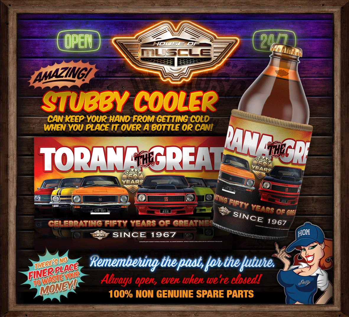 TORANA THE GREAT 50 YEARS STUBBY COOLER from House of Muscle