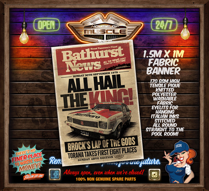 TORANA A9X BATHURST 1979 NEWS STAND FABRIC BANNER 1.5M x 1M